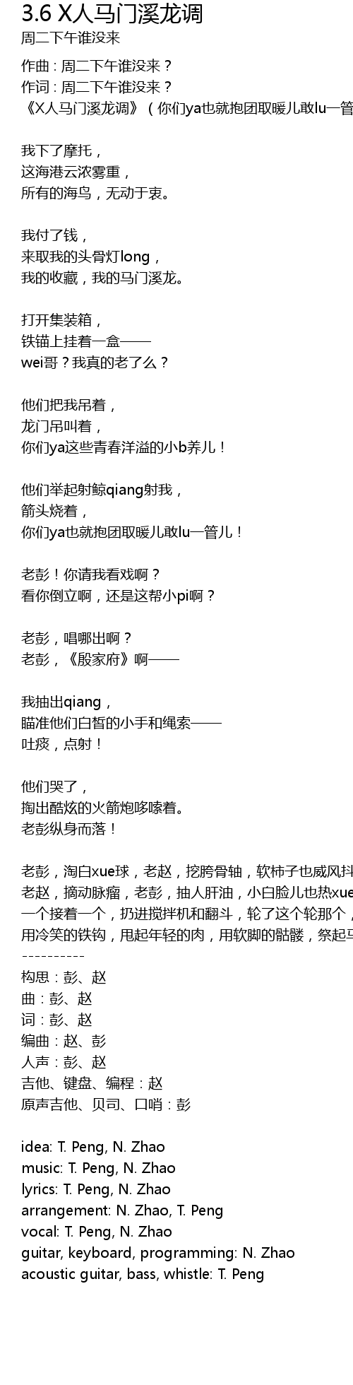 | zuò qǔ : zhōu èr xià wǔ shuí méi lái? | |