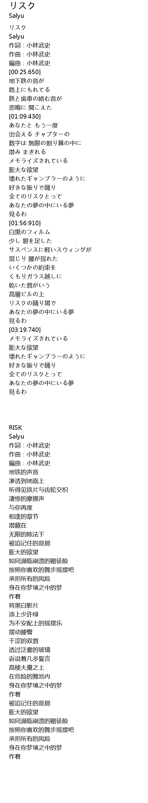 | [03:10.910] | あなたの夢の中にいる夢 |