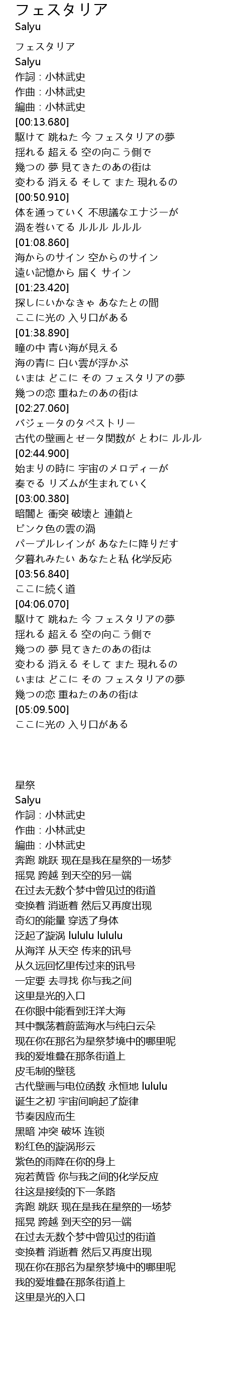 | [00:00.000] | フェスタリア |