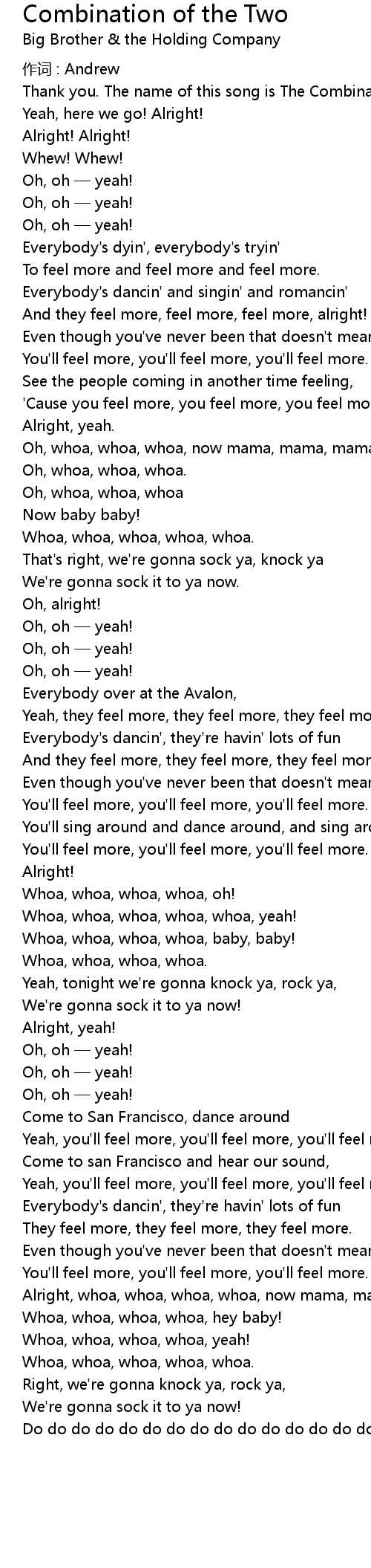| Yeah, you' ll feel more, you' ll feel more, you' ll feel more. | |