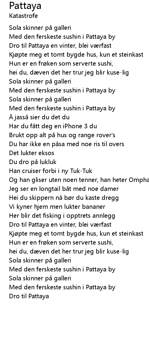 | [01:35.52] | Dro til Pattaya en vinter, blei v rfast |