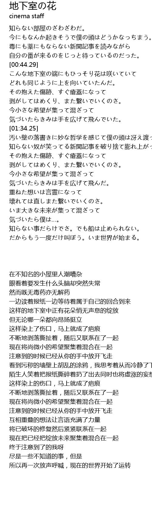 | [00:54.17] | こんな地下室の端にもひっそり花は咲いていて |