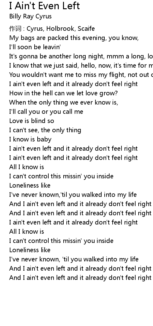 | And I ain' t even left and it already don' t feel right |