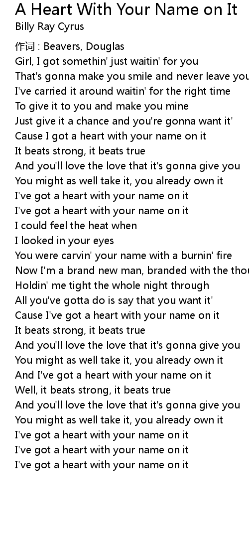 | And I' ve got a heart with your name on it | |