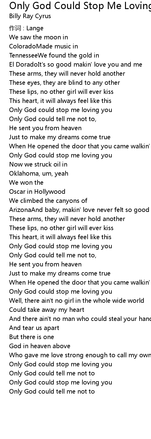 | Only God could stop me loving you | |
