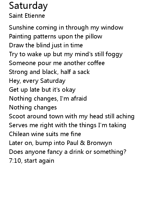 | Song | Saturday |