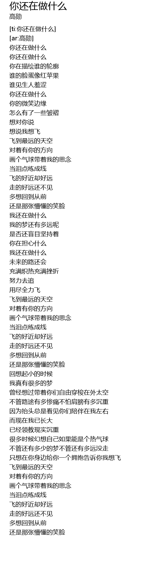 | [02:34.461] | 很多时候幻想自己如果能是个热气球 |
