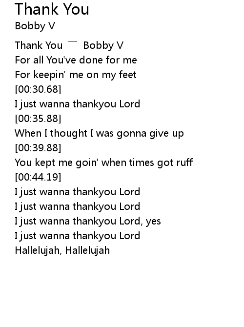 | [00:00.84] | Thank You Bobby V |
