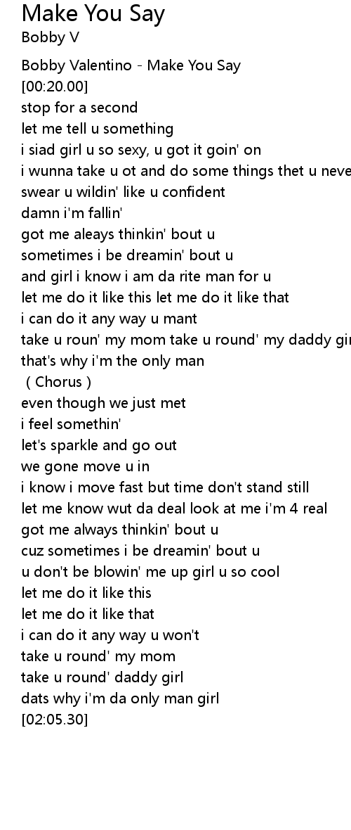 | [00:02.00] | Bobby Valentino Make You Say |