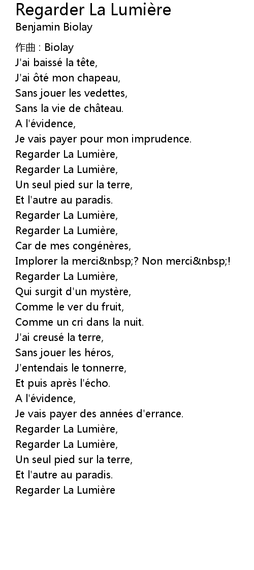 | Song | Regarder La Lumière |