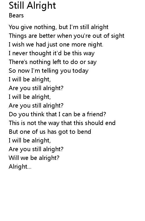 | Are you still alright? | |