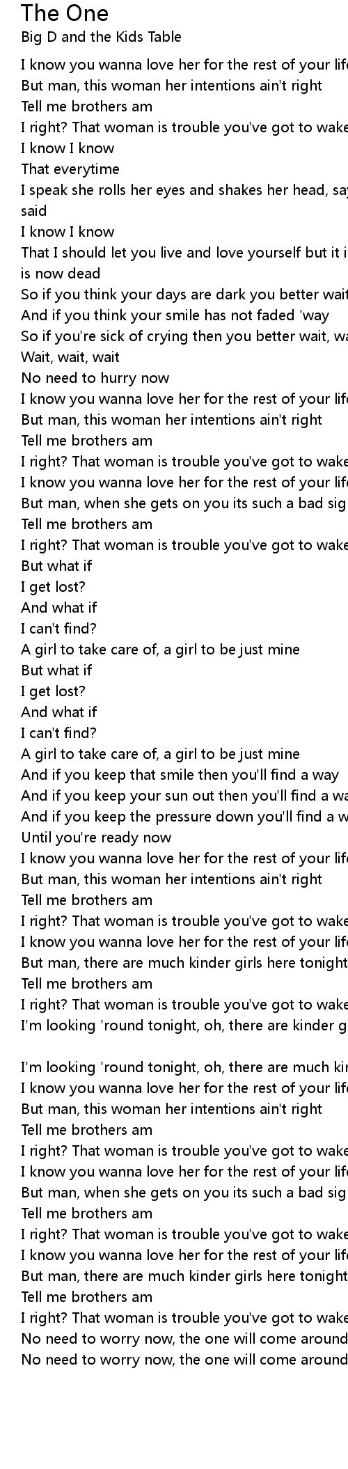 No need to worry now, the one will come around |