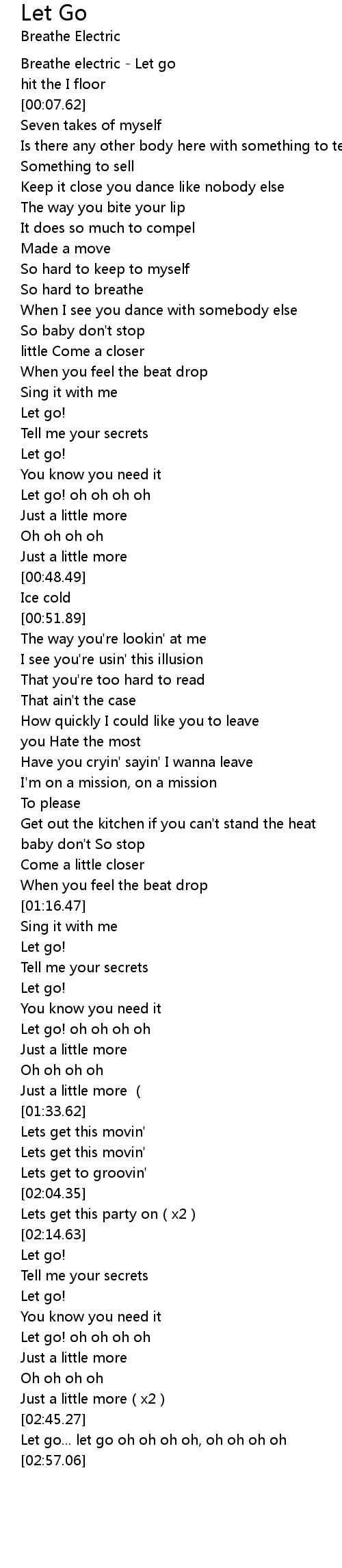 | [00:01.08] | Breathe electric - Let go |