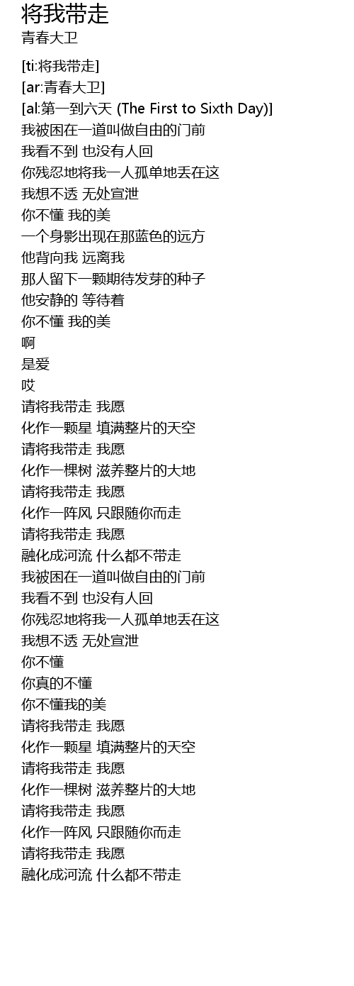 | [04:58.83] | qing jiang wo dai zou wo yuan |