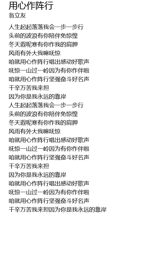 | [02:41.050] | 咱就用心作阵行坚强奋斗好名声 |