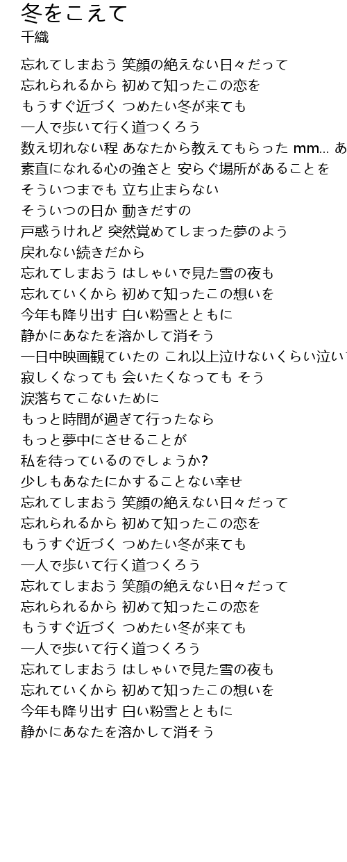 | 忘れてしまおう はしゃいで見た雪の夜も | |