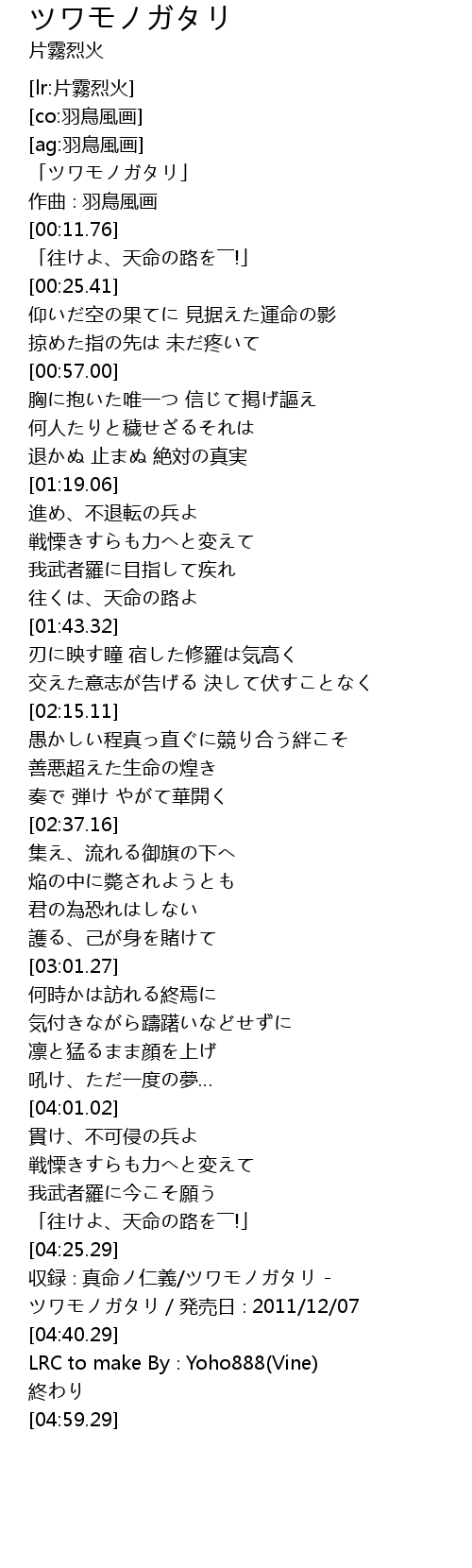 | [00:01.76] | 「ツワモノガタリ」 |