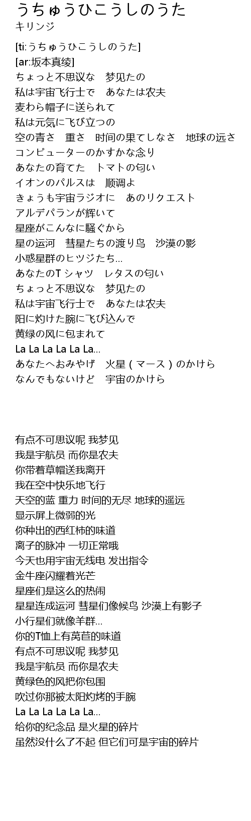 | [02:24.111] | 私は宇宙飞行士で あなたは农夫 |