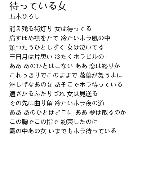 | 肩すぼめ襟をたて 冷たいホラ風の中 | |