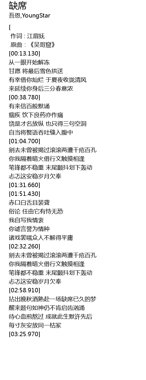 | [00:00.00] | 作词 : 江眉妩 |