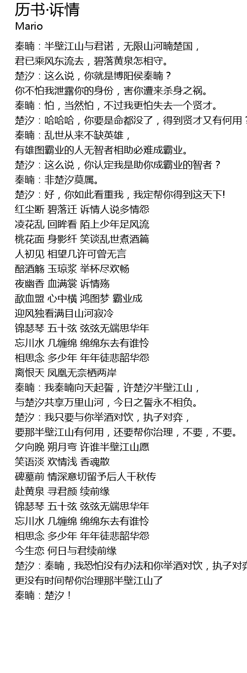 | [02:19.340] | qín nán: wǒ qín nán xiàng tiān qǐ shì, xǔ chǔ xī bàn bì jiāng shān, |