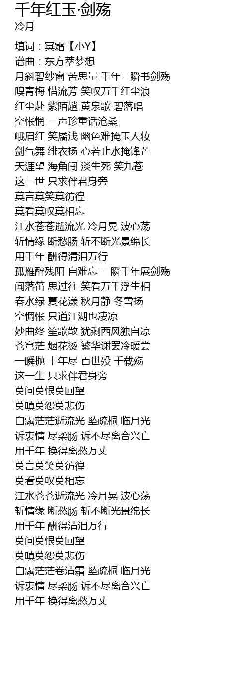 | [00:07.94] | 填词:冥霜【小Y】 |