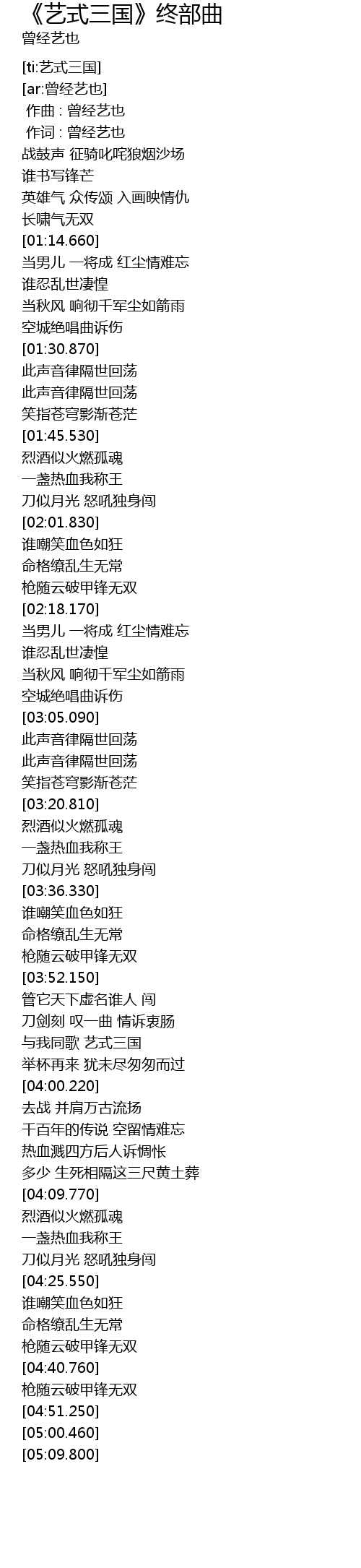 | [03:56.290] | 与我同歌 艺式三国 |