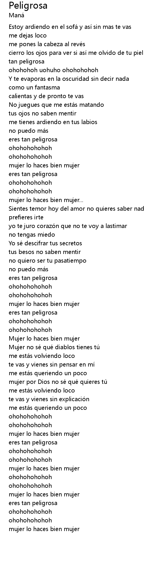 | eres tan peligrosa | |