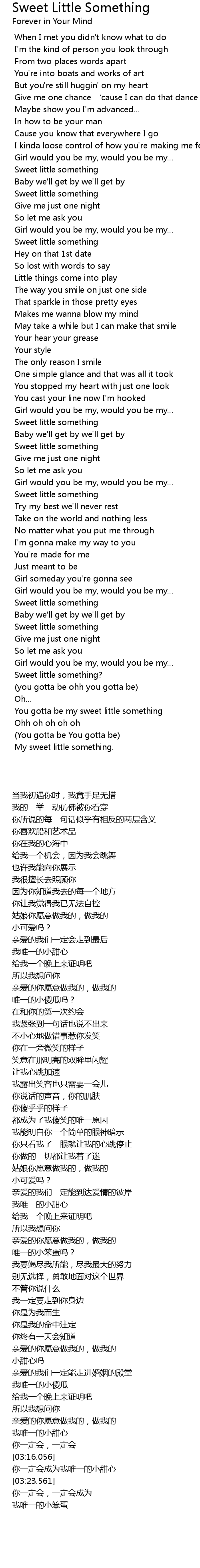 | [03:17.103] | You gotta be my sweet little something |