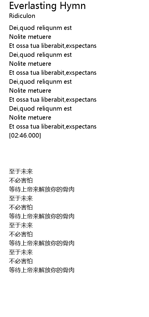 | [02:04.500] | Dei,quod reliqunm est |