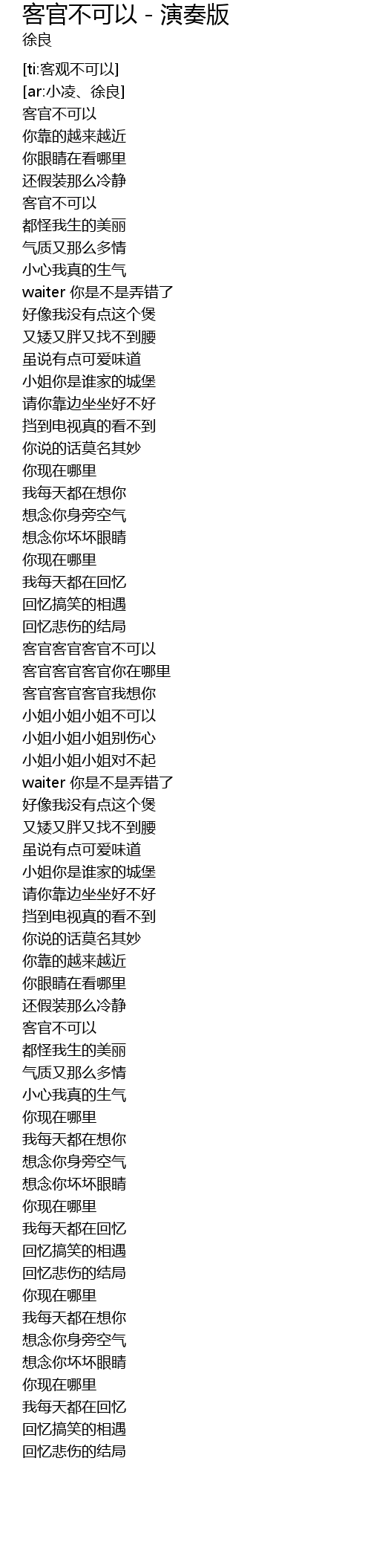 | [01:21.834] | kè guān kè guān kè guān bù kě yǐ |