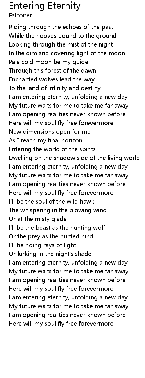 I am entering eternity, unfolding a new day |