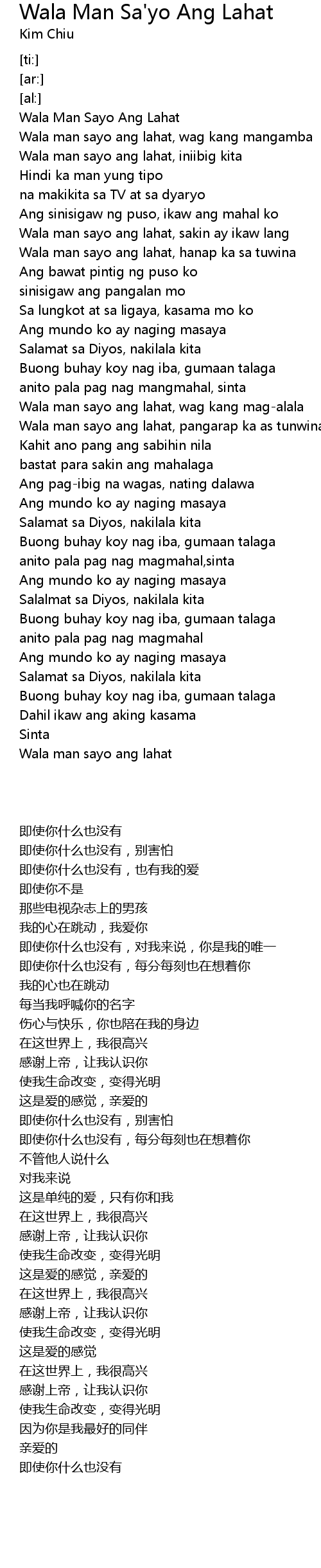 Wala man sayo ang lahat, wag kang mag-alala |