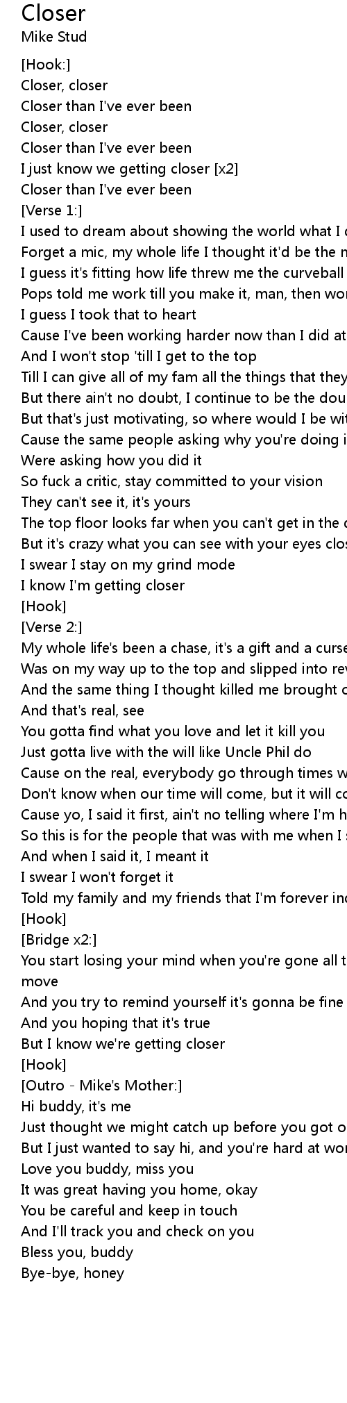 I just know we getting closer [x2] |