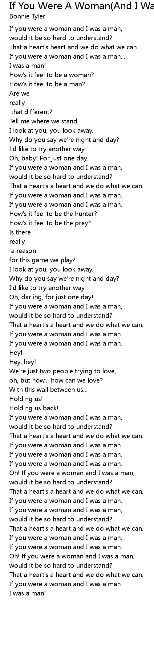 If you were a woman and I was a man, |