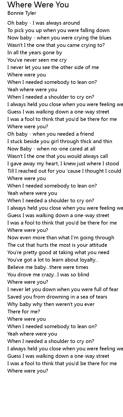 When I needed somebody to lean on? |