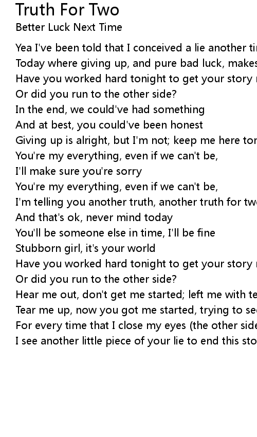 I'm telling you another truth, another truth for two |