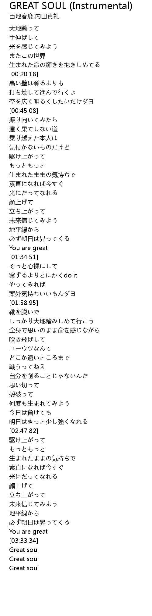 | [03:35.10] | Great soul |