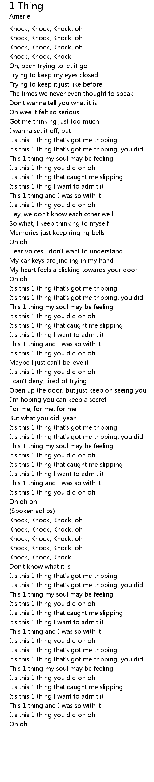 It's this 1 thing that's got me tripping |