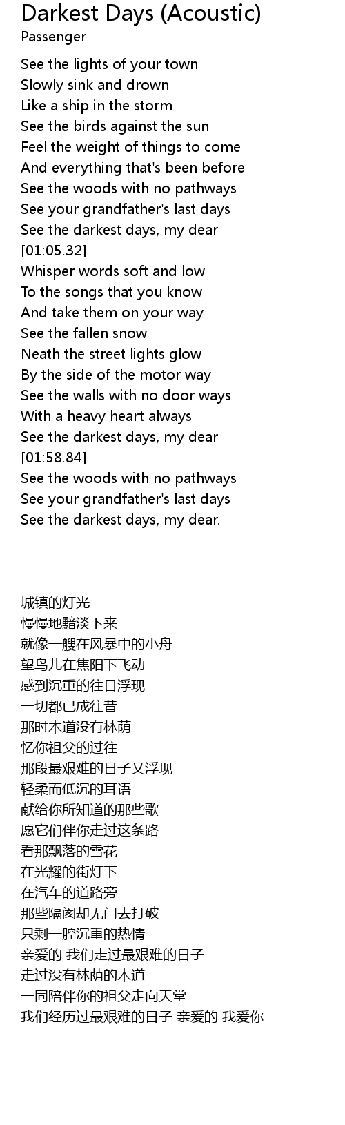 See the darkest days, my dear |