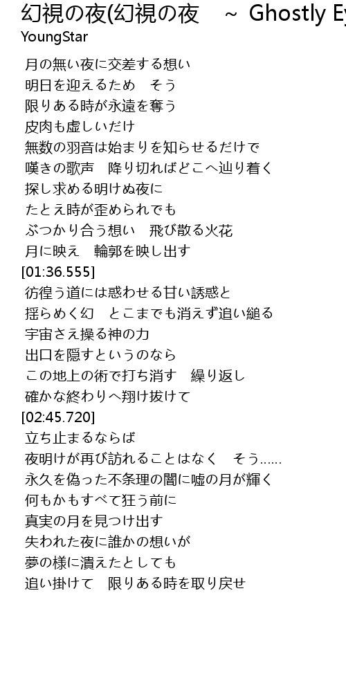 | [03:22.016] | 永久を偽った不条理の闇に嘘の月が輝く |