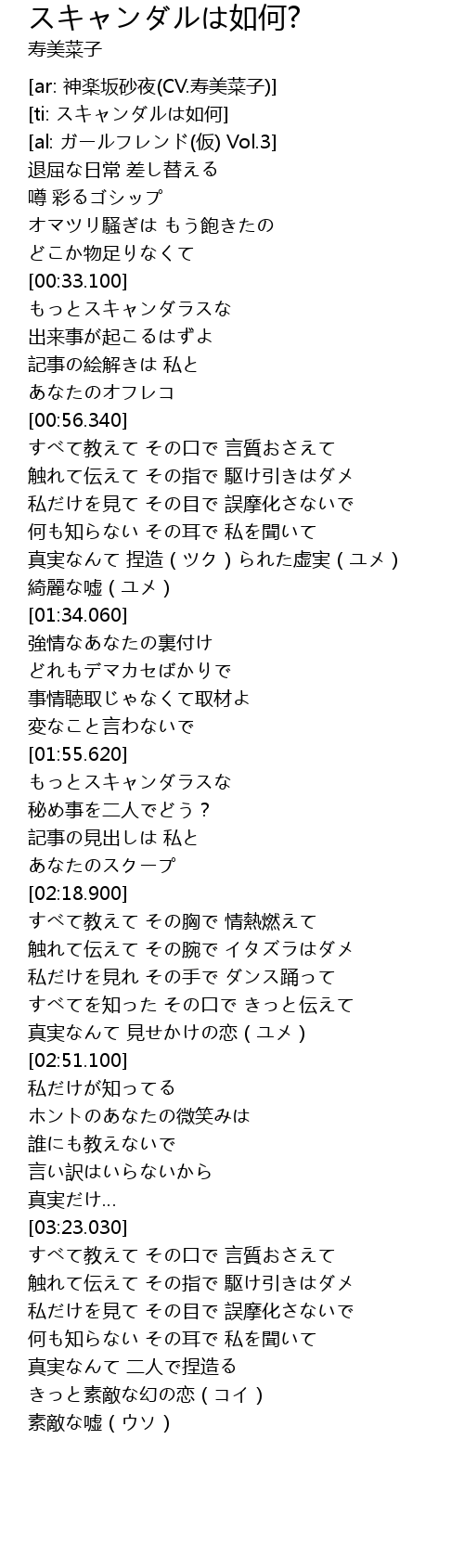 | [03:25.550] | すべて教えて その口で 言質おさえて |