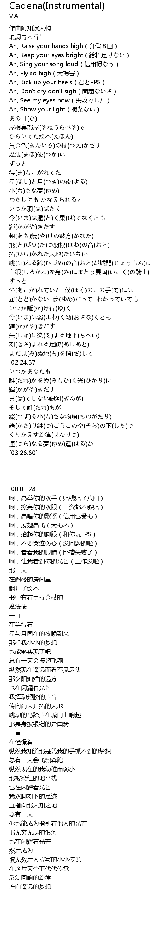| [00:18.99] | Ah, Don't cry don't sigh(問題ないさ) |