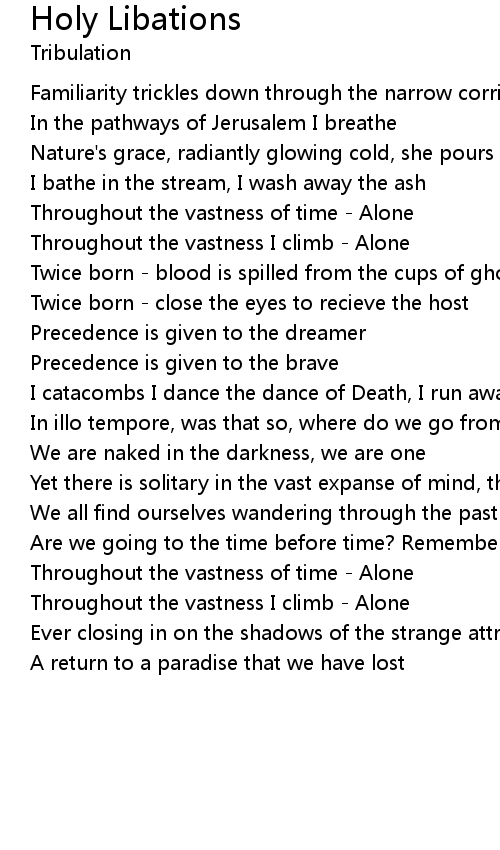 Nature's grace, radiantly glowing cold, she pours the wine onto my flesh |