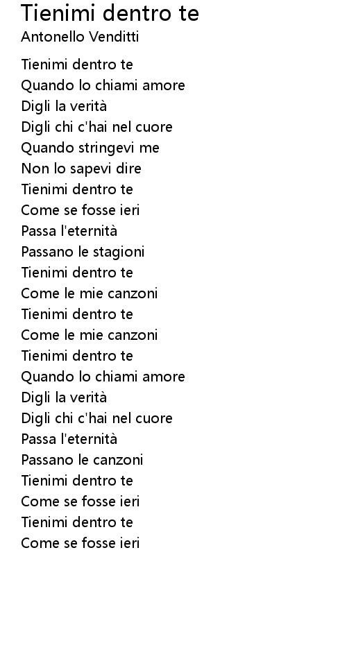 | Song | Tienimi dentro te |