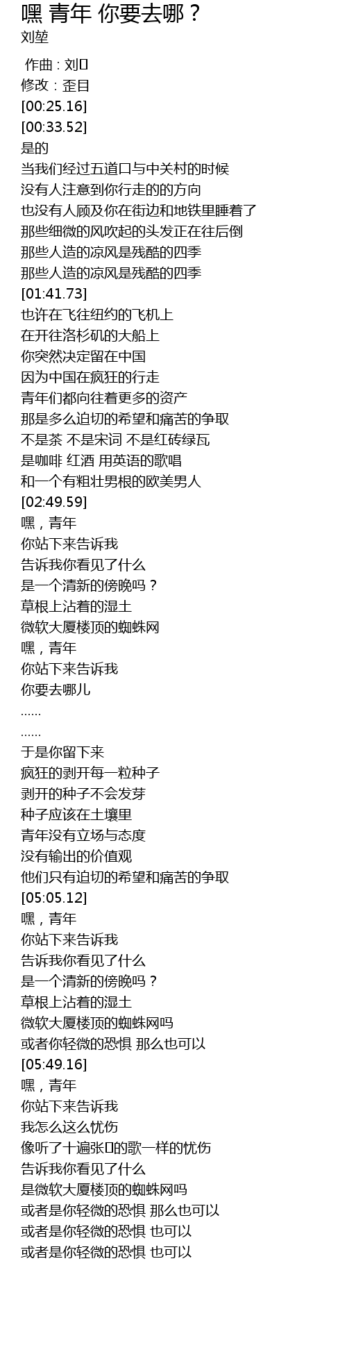 | [04:45.12] | qing nian mei you li chang yu tai du |