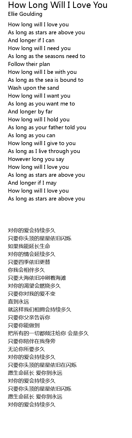 How Long Will I Love You