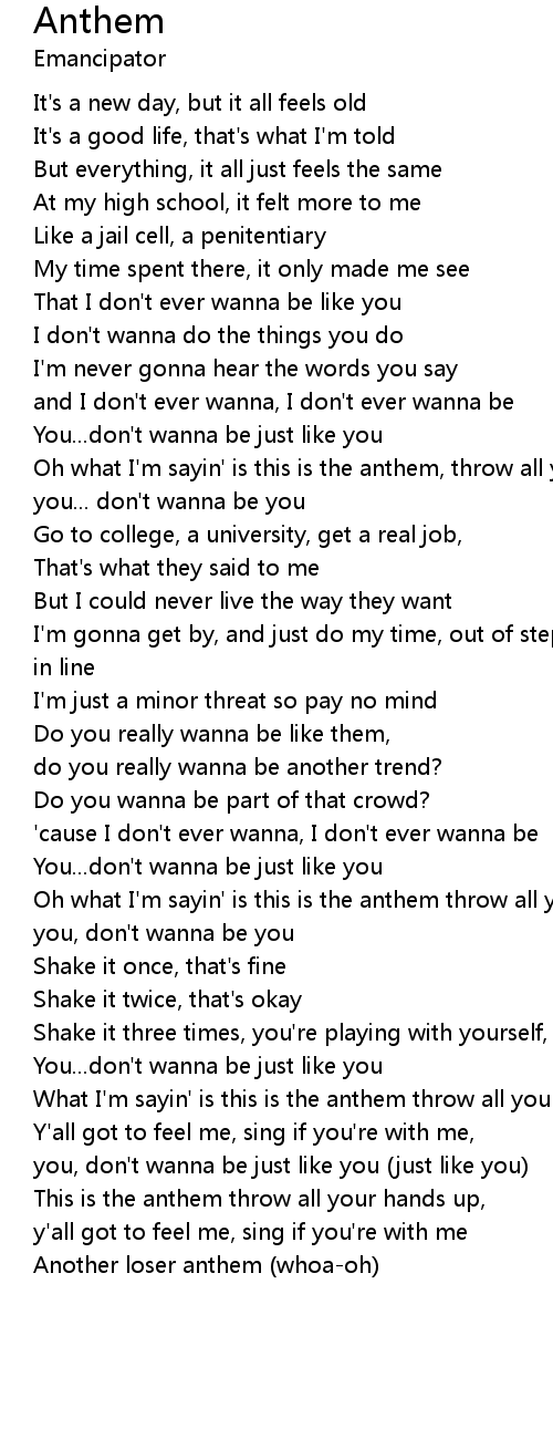 Oh what I'm sayin' is this is the anthem, throw all your hands up, |