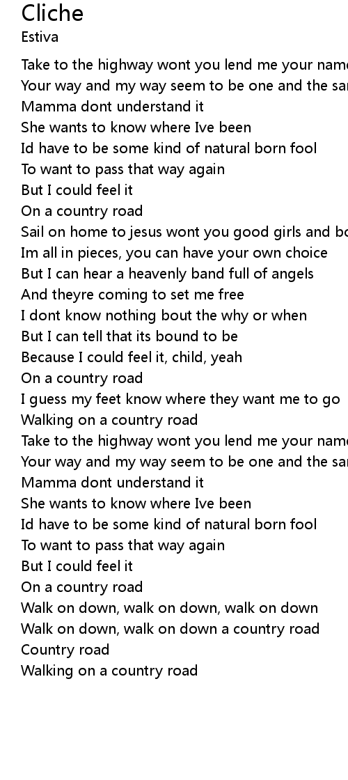 Walk on down, walk on down a country road |