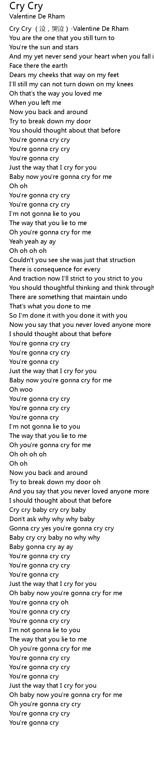 | [00:00.00] | Cry Cry qì, kū qì Valentine De Rham |